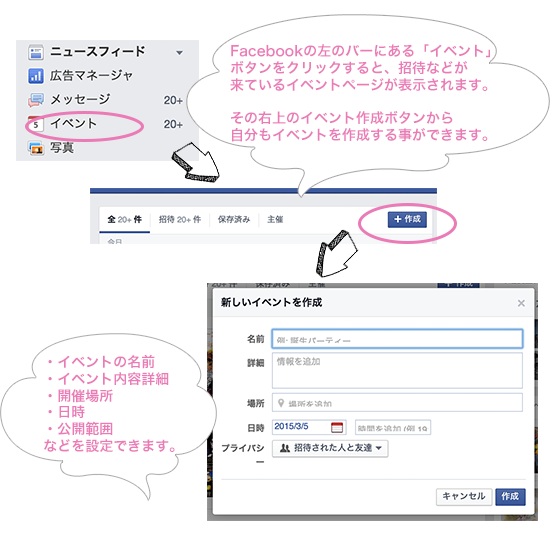 Facebookを利用されている方は、イベントの招待を受けた事もあるかもしれません。Facebookでは誰でも自由にこのイベントページを作ることができます。